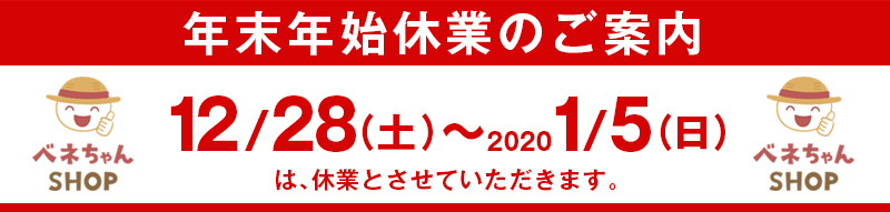 さて、ベネちゃんSHOPでは、下記の通り、年末年始休業とさせていただきます。